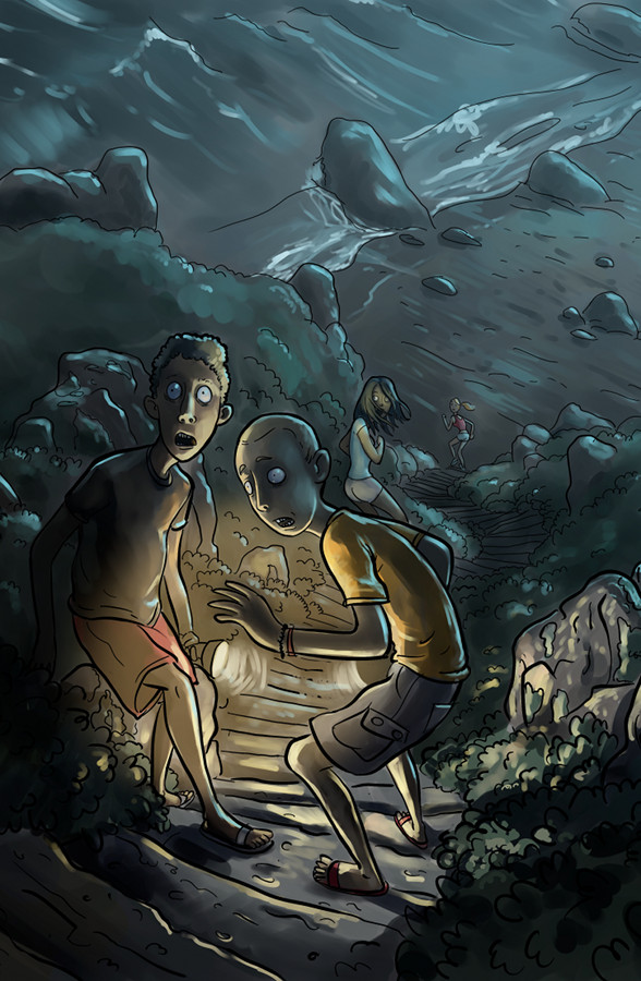 It ended up as a scene from some kind of teen mystery novel or comic, which I think was influenced by my love of horror films, but probably a likely result of watching Scooby-Doo! Mystery Incorporated a week ago. After working on it some more, on and off over a period of a couple days, I finished with the above cover idea.