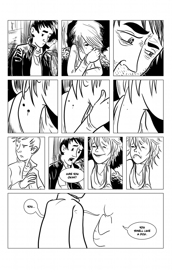 Initially I was planning on doing a colour book, and I wanted to go for a more realistic approach to the art. But the more indie comics I have read of late have only convinced me that the whole approach of having iconic characters in black and white helps the reader flow better through the book and story. I do not want the reader to stall on an image because they can't figure out what is going on, and therefore break their immersion in the story.