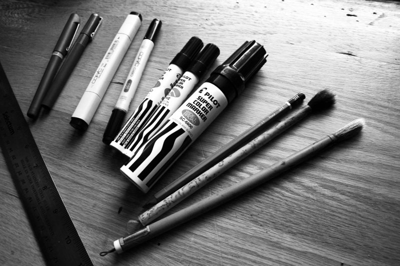 And for filling in black areas, I've decided to stick with my Pilot Super Color markers that I use in my fine art work. They stink and it might not be the best for my head, but I love how utilitarian they are.